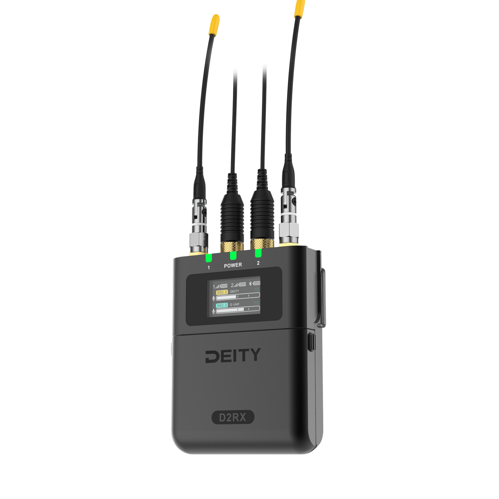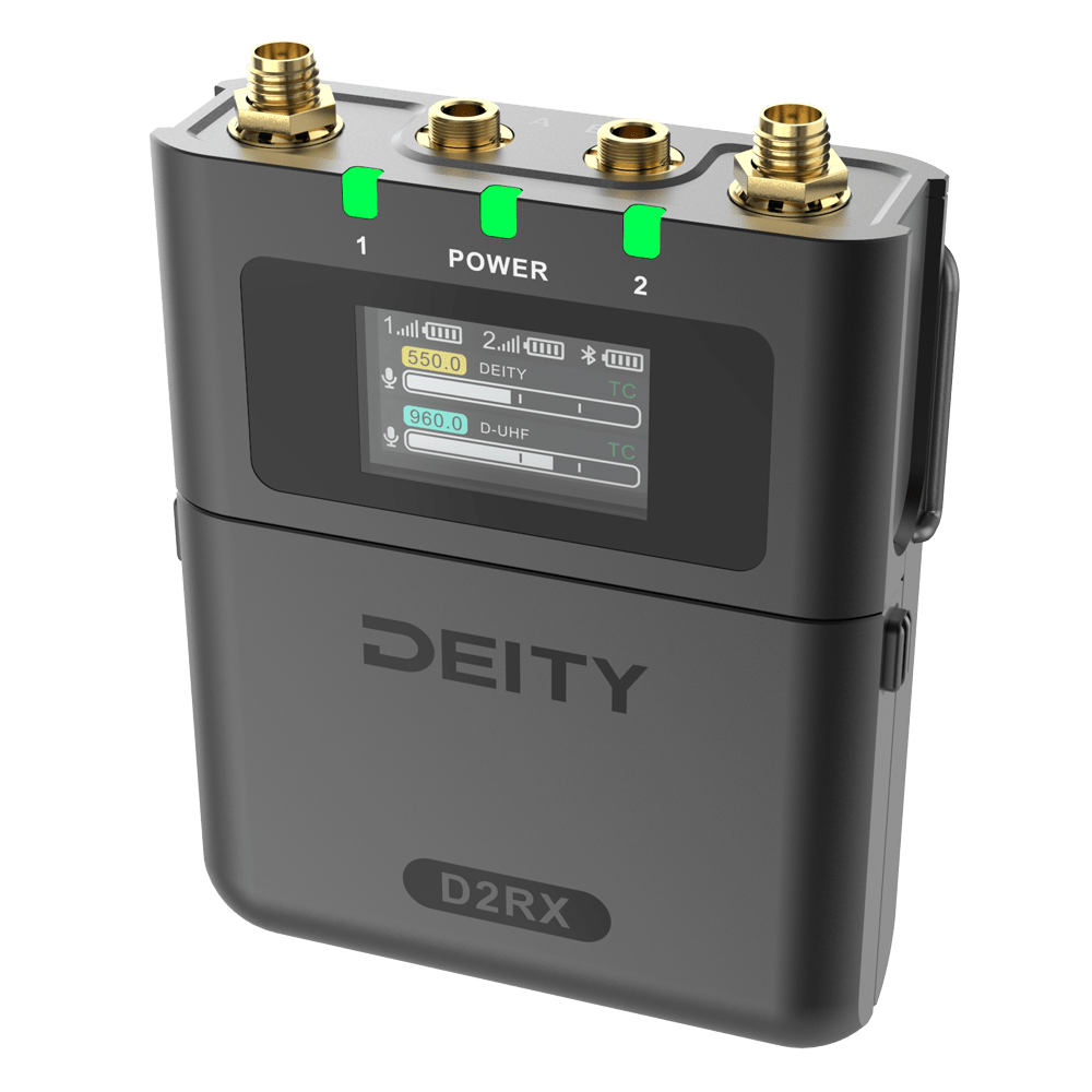 The Deity D2RX sets itself apart by using an ultra-broad UHF spectrum. This receiver’s frequencies range from 550-960 MHz. (The actual band size and spectrum will depend on where the device is used; SEE MORE FOR DETAILS).