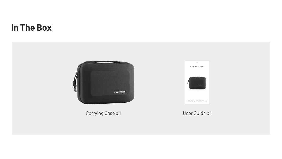 The PGYTECH Carrying Case is a compact, zippered hand-carry case with a waterproof, hard-fabric shell. It will hold the Osmo Pocket gimbal or Osmo Action camera plus accessories such as a mini tripod, various mounts, memory card readers, short cables, and more. Six folding dividers are included for customizing the storage space as needed. The shell has a secure inside pocket and an accessories leaflet organizer with additional pockets and straps.