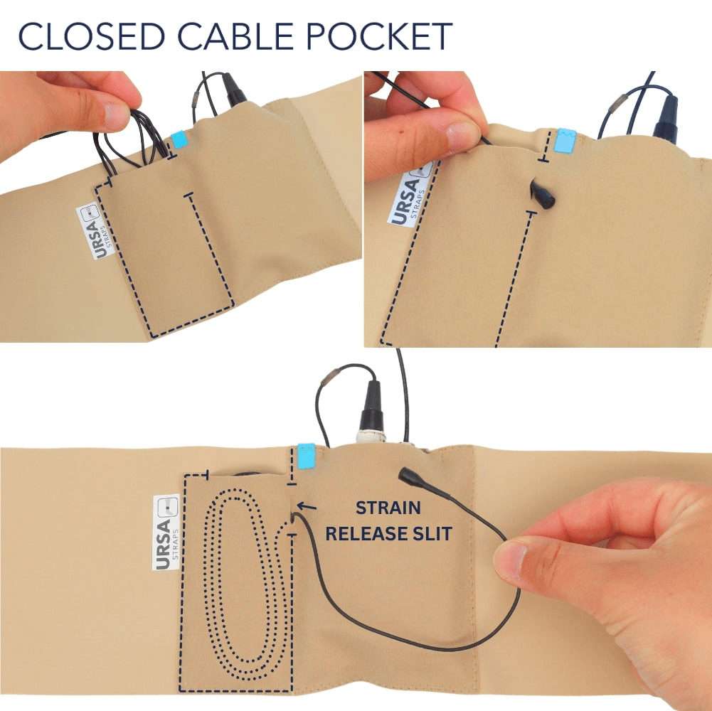 - Integrated cable pocket allow the mic cable to be looped and secured on the strap without the need for sticky tape.