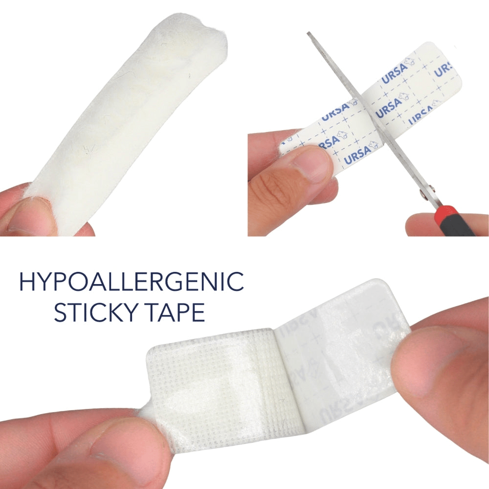 – Adhesive: Hypoallergenic residue free sticky tape